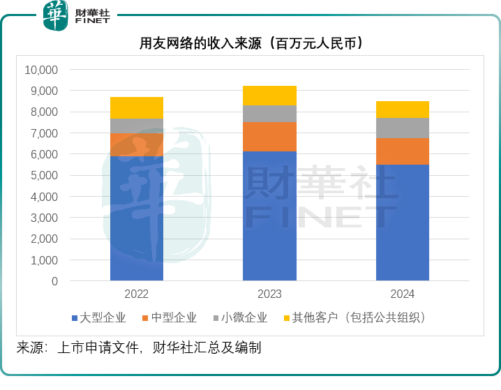见下图,大型企业客户为其贡献一半以上收入。