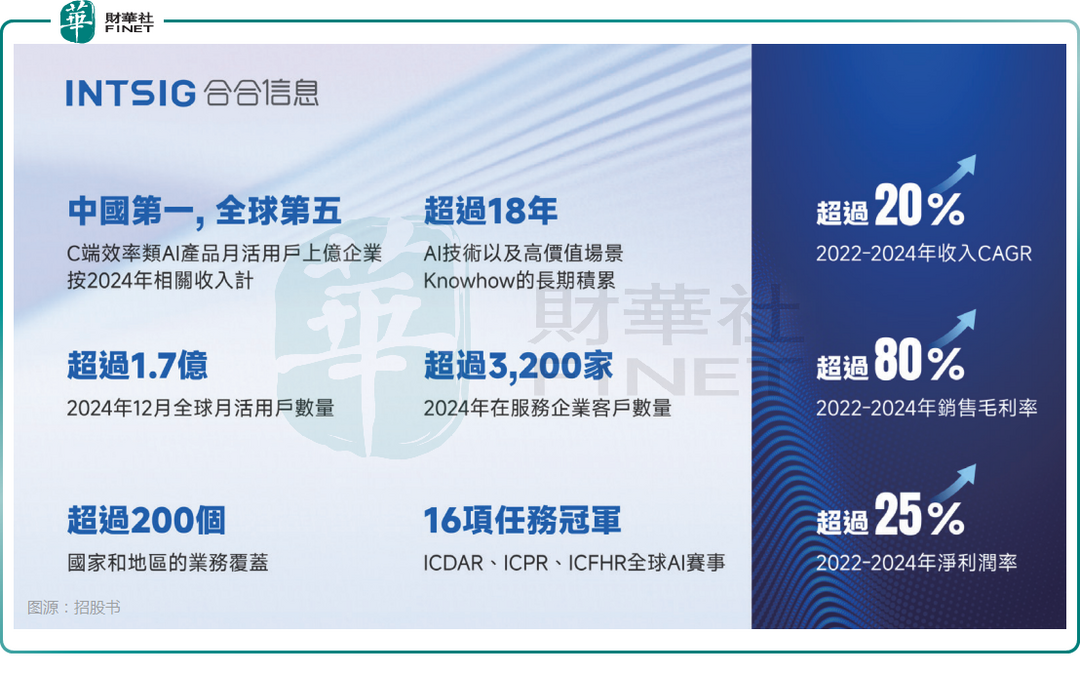根据灼识咨询,在2024年全球C端效率类AI产品MAU上亿的企业中,按相应产品的收入计,合合信息位居中国第一名、全球第五名,并保持强劲的增长态势。