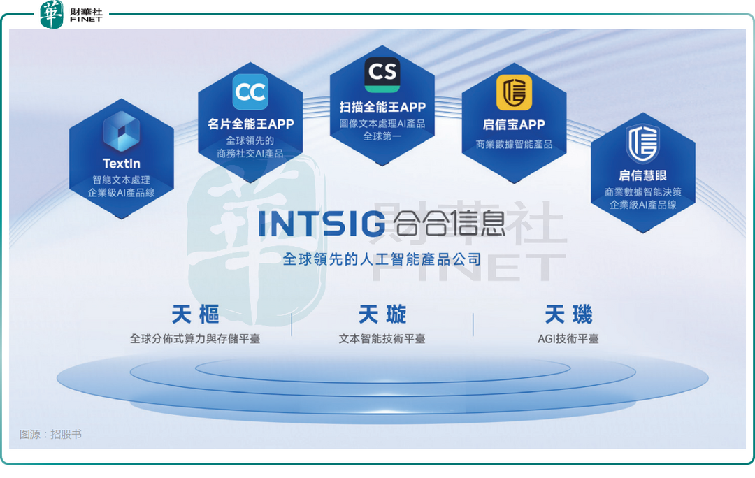 合合信息来自于上海,是一家人工智能产品公司,核心产品是为全球C端用户和多元行业B端客户提供完善的产品组合,旗下拥有“扫描全能王”“名片全能王”等一众应用软件,其业务已经覆盖全球超过200个国家和地区。