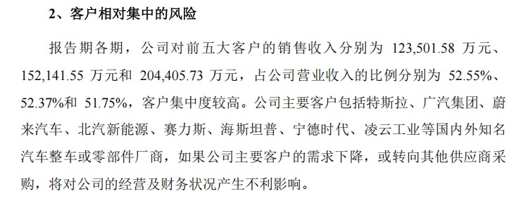 然而,高客户集中度也意味着其当前的发展,在一定程度上或在“透支”未来的潜力。随着核心客户渗透率不断上升,其拓展空间或可能趋窄。更关键的是,这种深度绑定关系虽能带来阶段性业绩,却也削弱了企业自身在策略变动面前的主动性。当主机厂更换平台、推进自制或压缩成本时,供应商若缺乏横向客户覆盖能力与产品替代,便容易陷入被动。