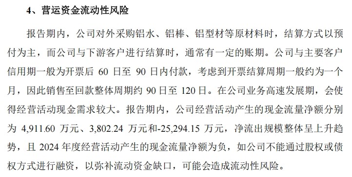 但随着项目同步展开,现实层面的资金消耗压力也不可避免地显现。2024年,友升铝业经营活动产生的现金净流量为-2.53亿元,一定程度上说明其自身造血能力尚未与扩张速度形成匹配。