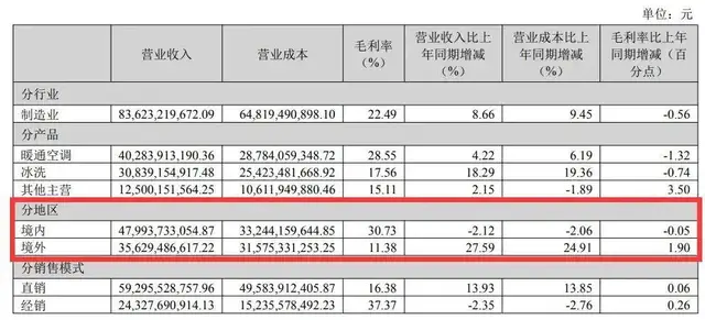 聚焦毛利率这一关键指标,2024年海信家电在国内市场的毛利率达到了30.73%,与上一年相比下滑了1.17个百分点,但却是海外的近3倍。