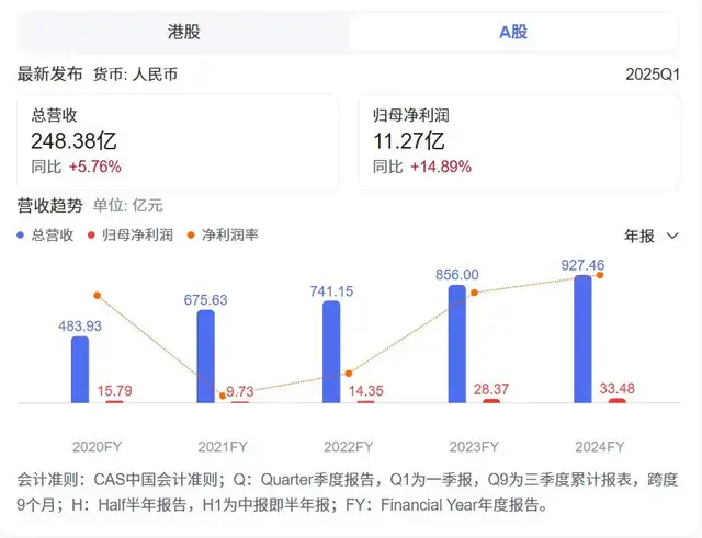 根据财报披露的数据,2024年全年期间,海信实现营业收入达927.46亿元,与上一年度相比实现了8.35%的增长;归属于母公司股东的净利润为33.48亿元,同比增幅达到17.99%。